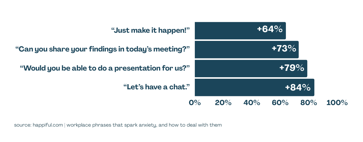 In one study, 807 participants wore heart-rate monitors while senior leaders casually said common workplace phrases. Heart rates spiked dramatically after hearing a few innocent words like: “Let’s have a chat.”